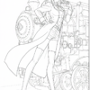 スチームパンク風のキャラクターと機関車のぬりえ画像ですね!前回と同じように、塗り方の具体的なアドバイスをさせていただきます。基本的には前回と共通する部分が多いですが、改めて詳細に見ていきましょう。